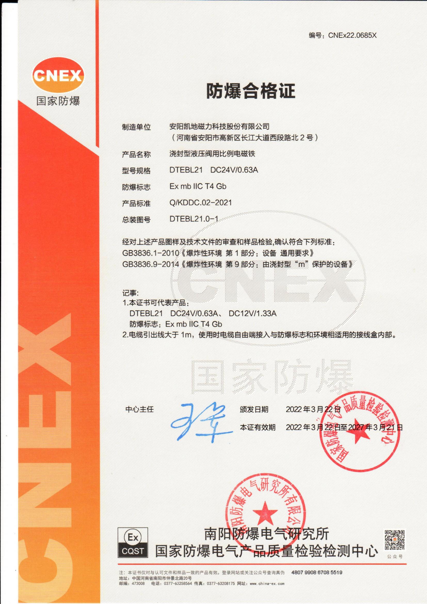 CNEx22.0685X DTEBL21 II類 防爆合格證 有效期至2027年3月21日