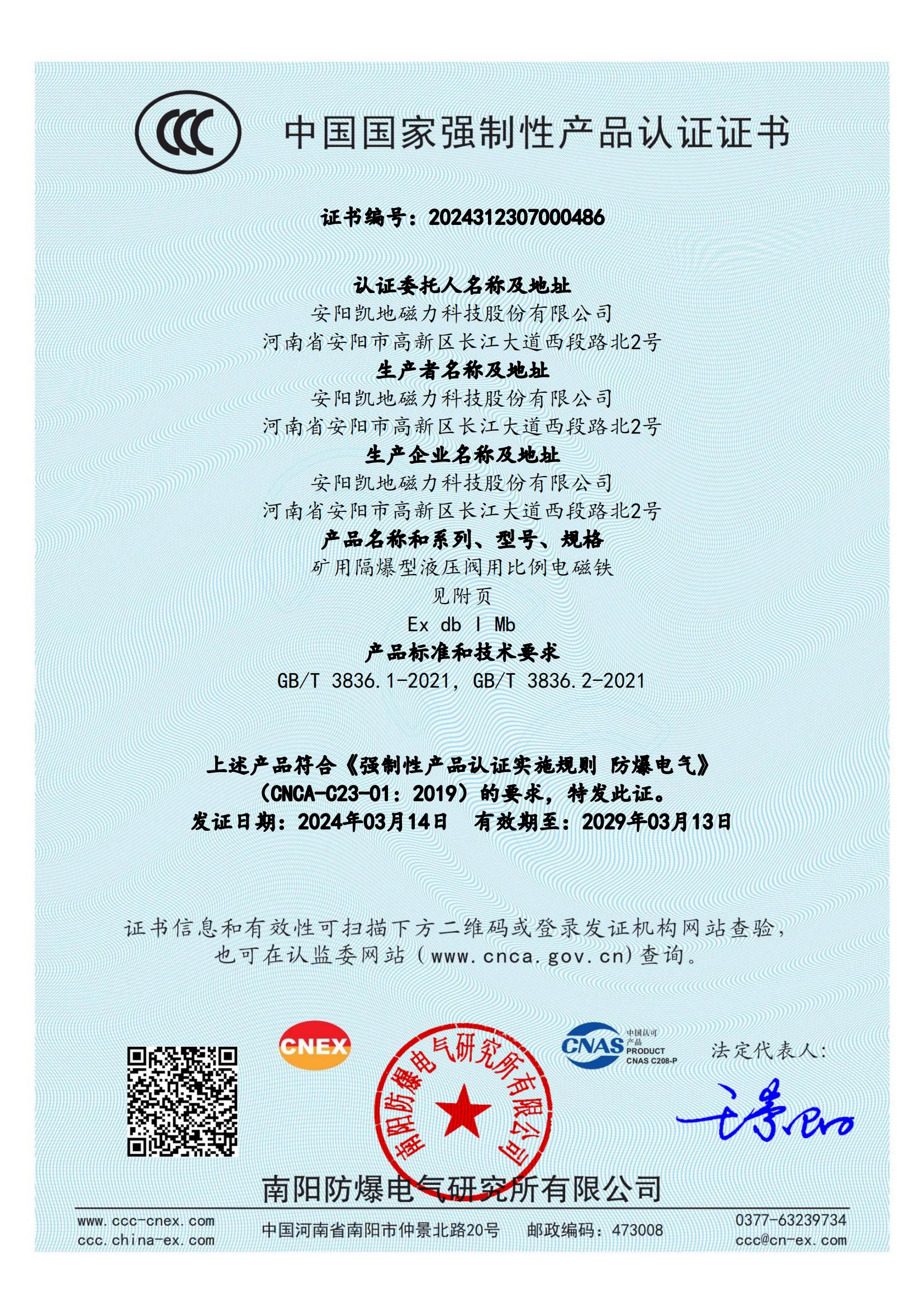 2024312307000486 礦用隔爆型液壓閥用比例電磁鐵CCC證書 DTBBL10-37FYC_00