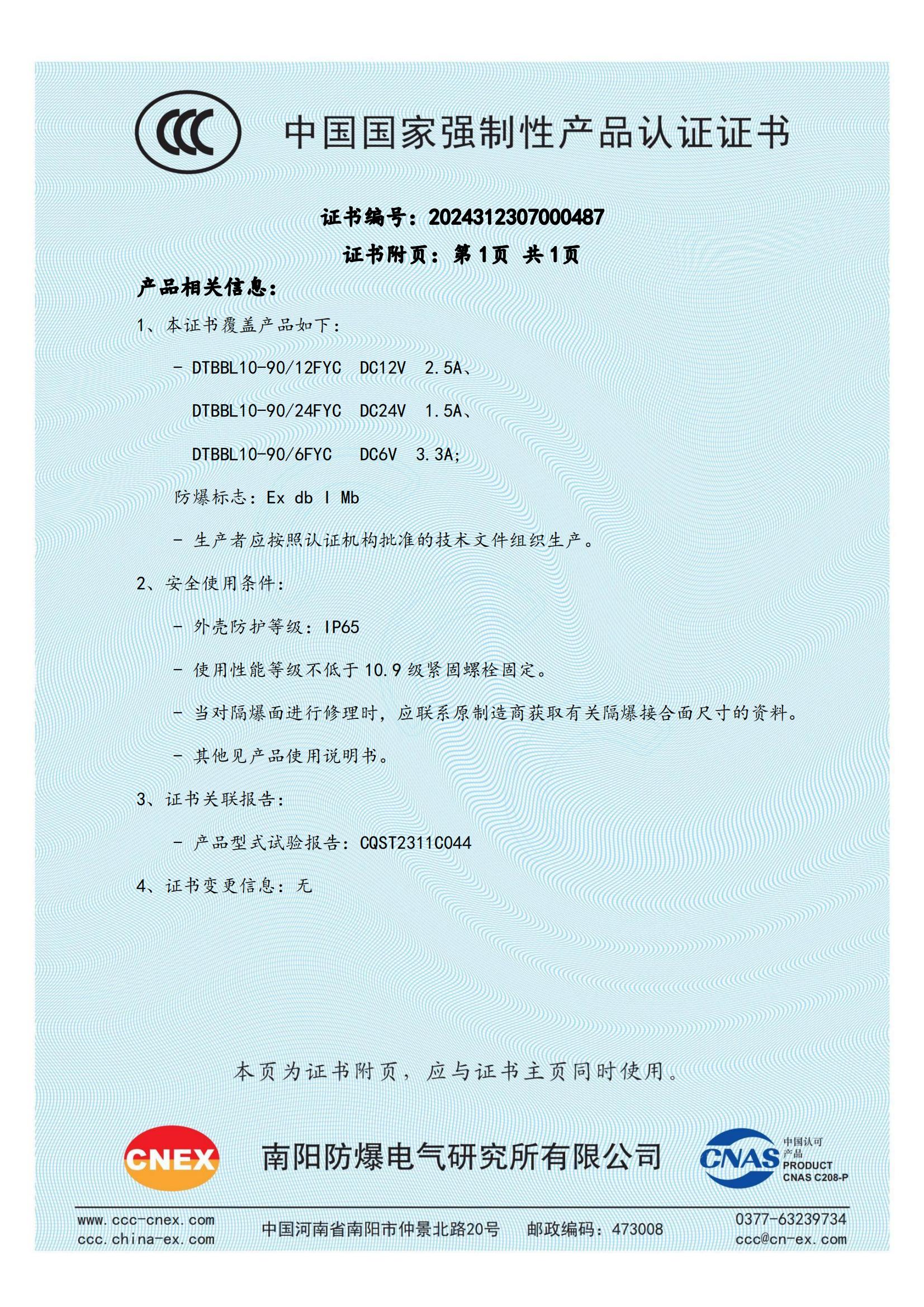 2024312307000487 礦用隔爆型液壓閥用比例電磁鐵 DTBBL10-90FYC CCC證書(shū)_01