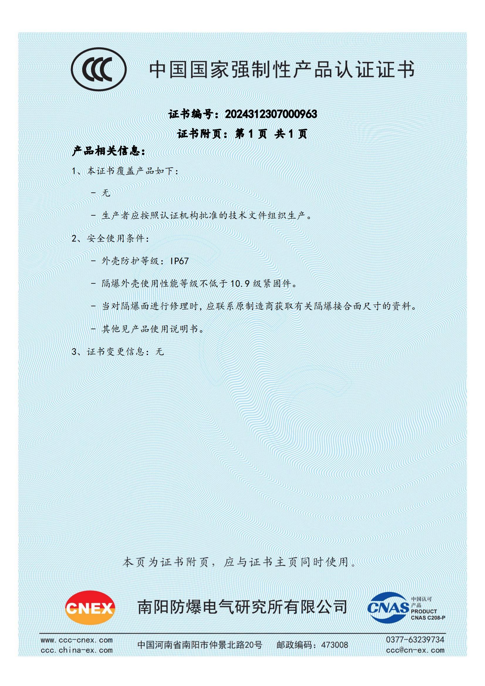 2024312307000963 礦用隔爆型液壓閥用比例電磁鐵CCC證書 有效期至2029年11月14日_01
