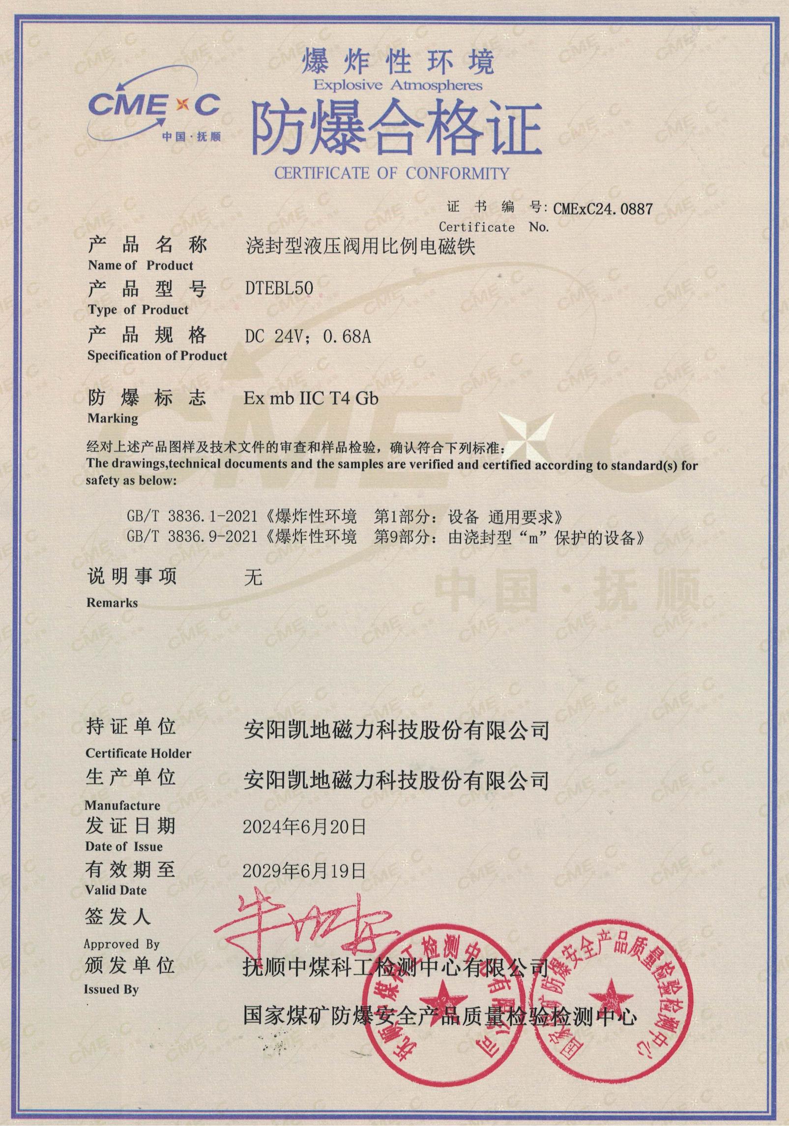 CMExC24.0887 DTEBL50 II類 防爆合格證 有效期至2029年6月9日