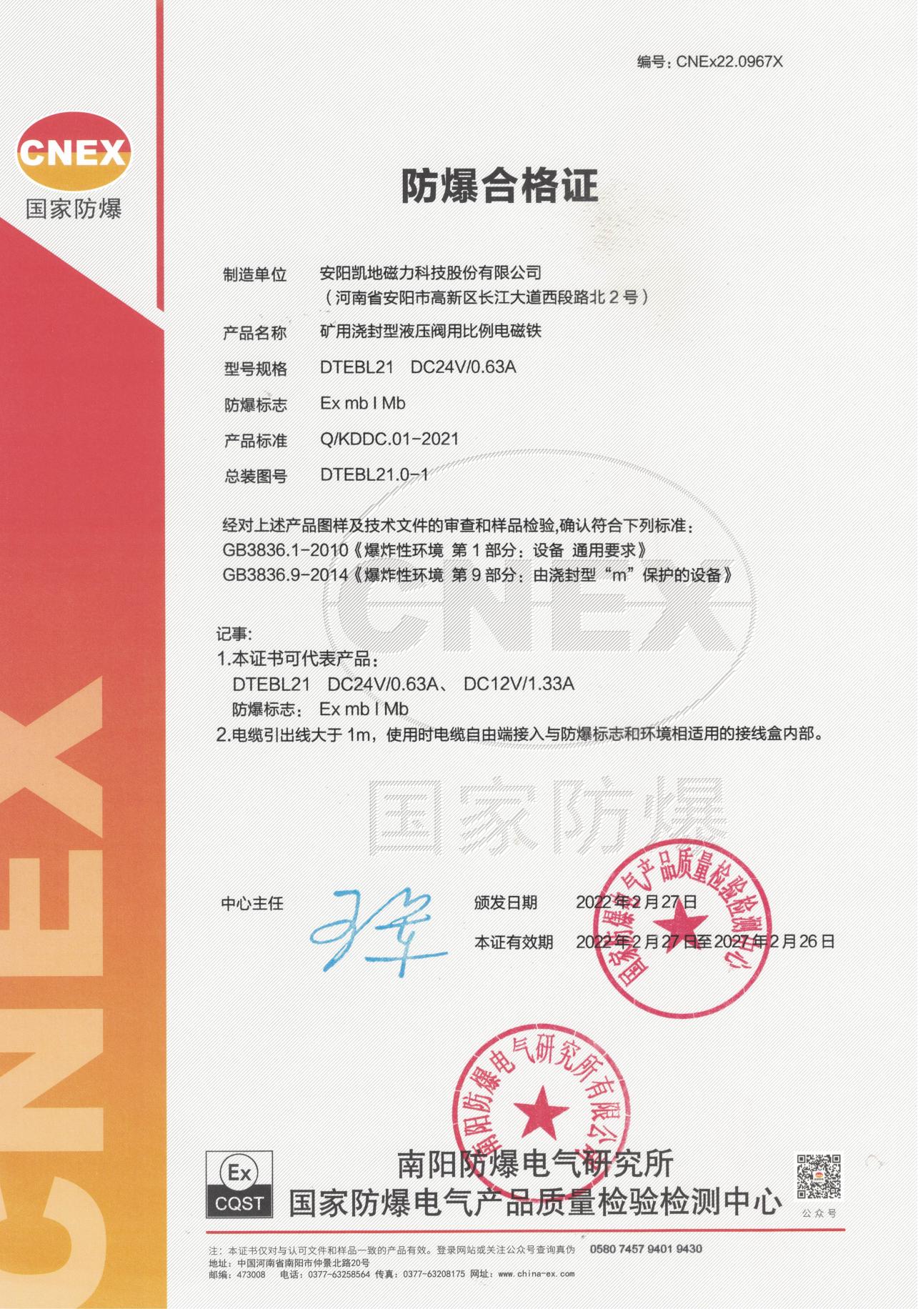 CNEx22.0967X DTEBL21 I類 防爆合格證 有效期至2027年2月26日
